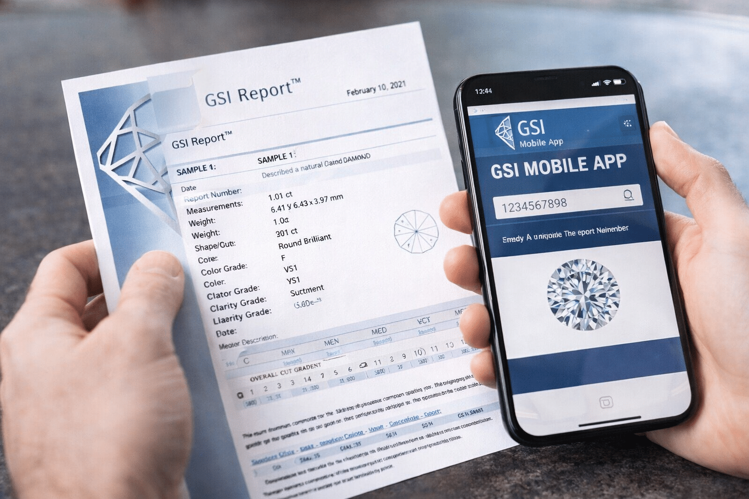 Every GSI grading report can be verified online through GSI’s official report portal at gemscience.net using the report number printed on the certificate.